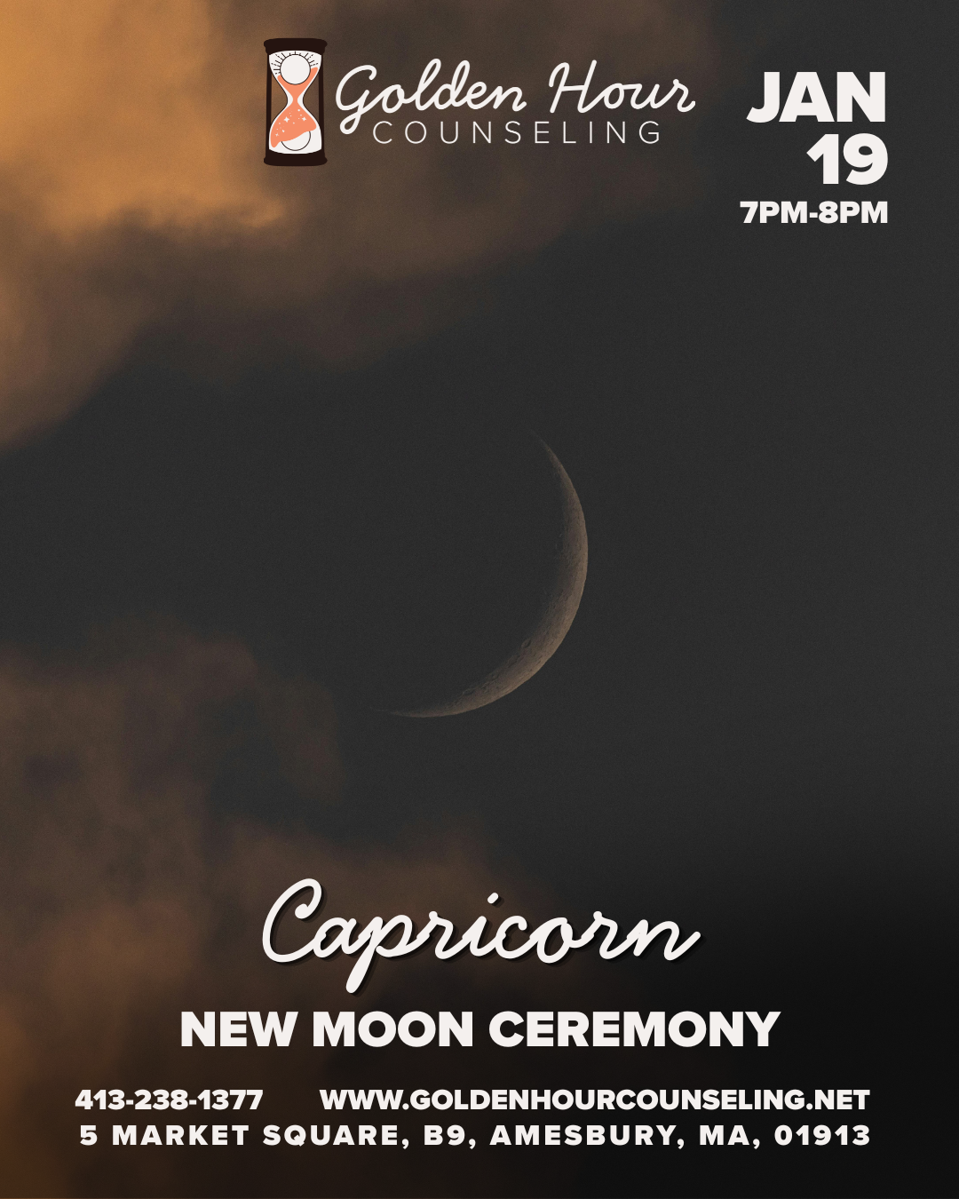 Come join us at a ceremony to celebrate the Capricorn New Moon at Golden Hour Counseling.